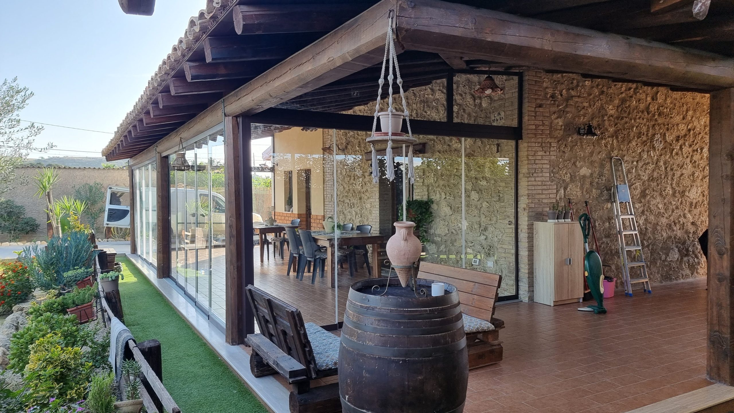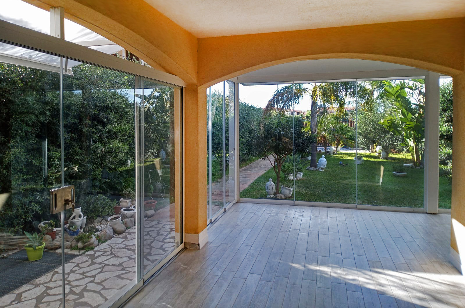 Le vetrate panoramiche per la chiusura del portico valorizzano con stile l’ambiente in cui sono installate. L’affaccio meraviglioso sul giardino o su una vista panoramica aiuterà a rendere il tutto ancora più suggestivo.