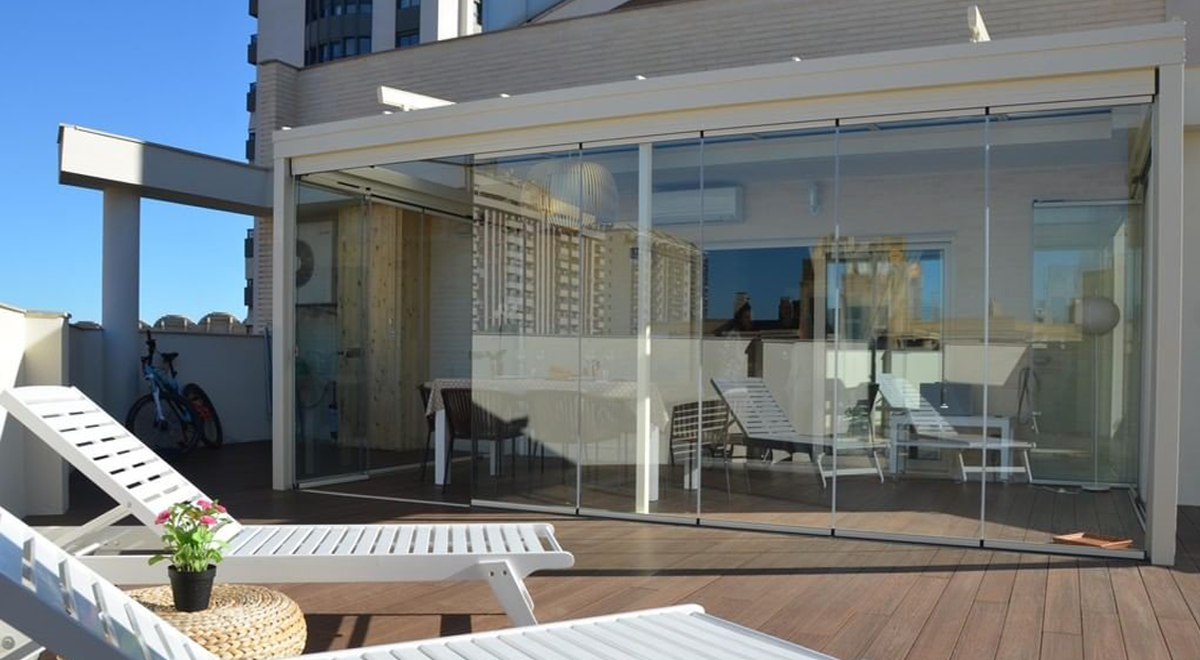 Grazie alle vetrate panoramiche scorrevoli il balcone può trasformarsi nel luogo ideale in cui passare un momento di relax senza preoccuparsi delle condizioni atmosferiche.